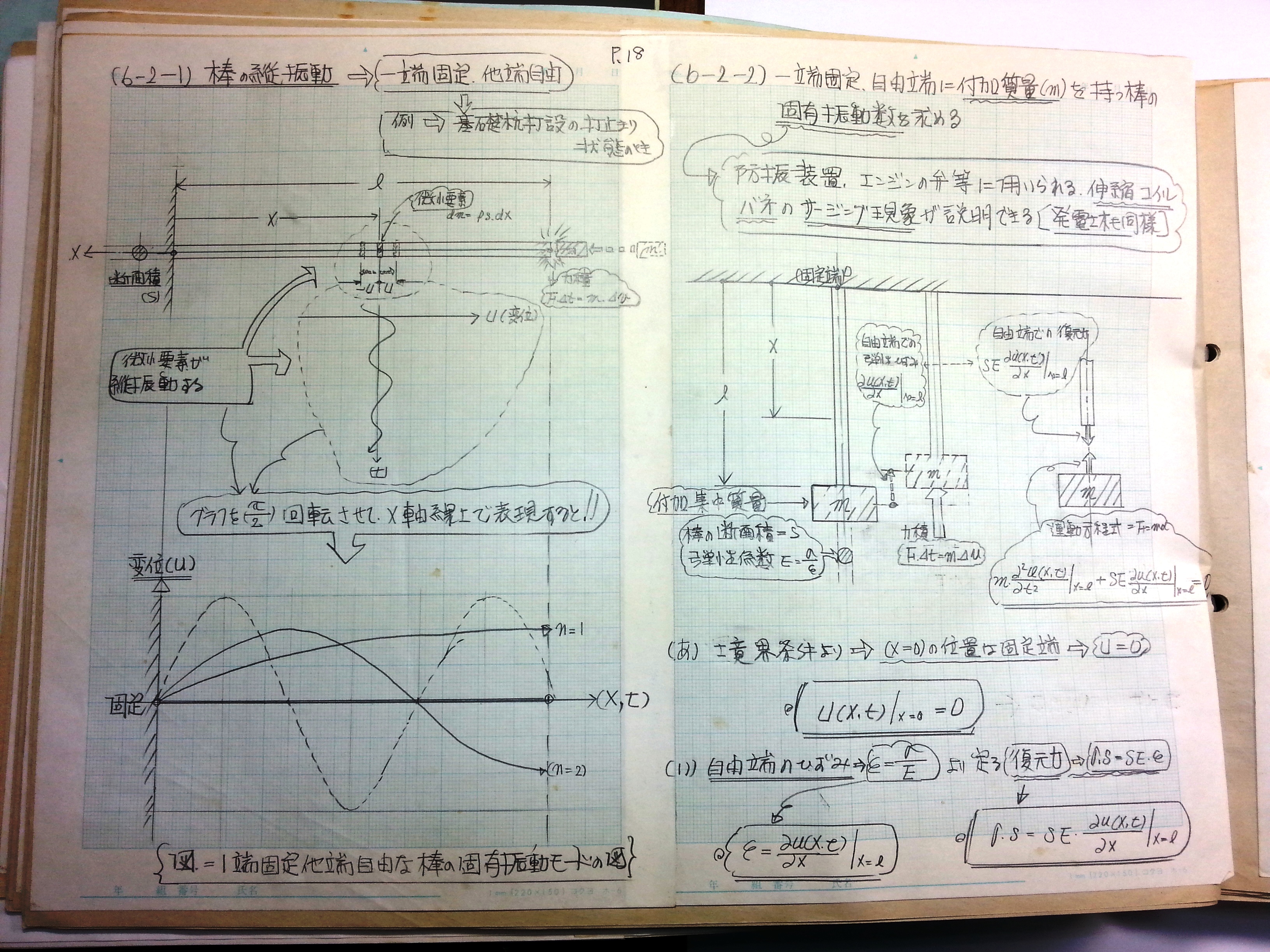 一端固定+自由端に付加質量を持つ棒の固有振動数を求める(防振装置、エンジンの弁等に用いられる。伸縮コイルバネのサージング現象が説明できる)