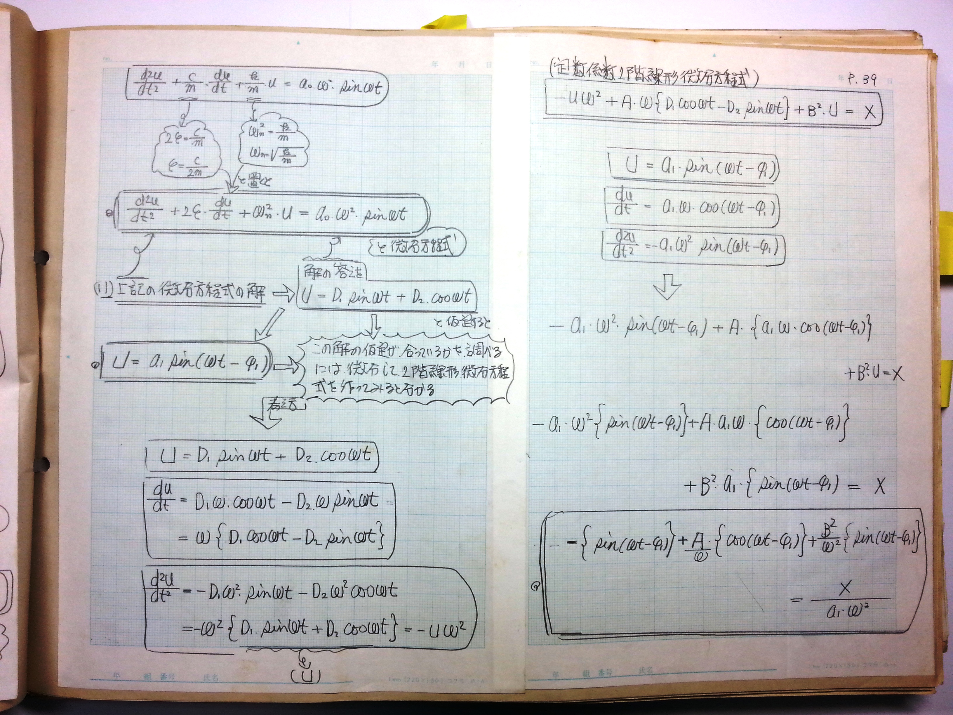 P38の強制変位が作用する振動系モデルの運動方程式 → 微分方程式の解
