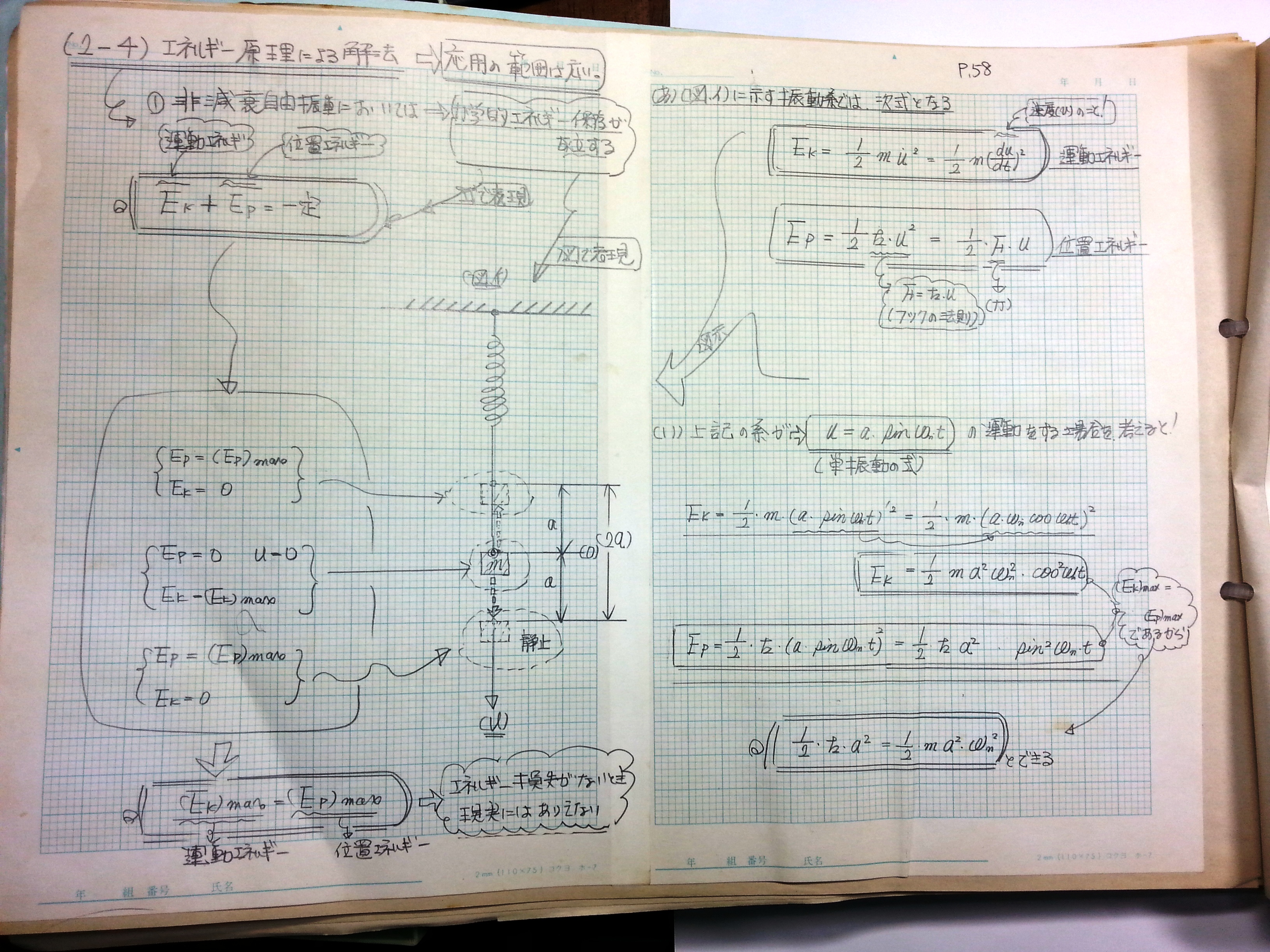 非減衰自由振動においては、力学的エネルギー保存が成立する