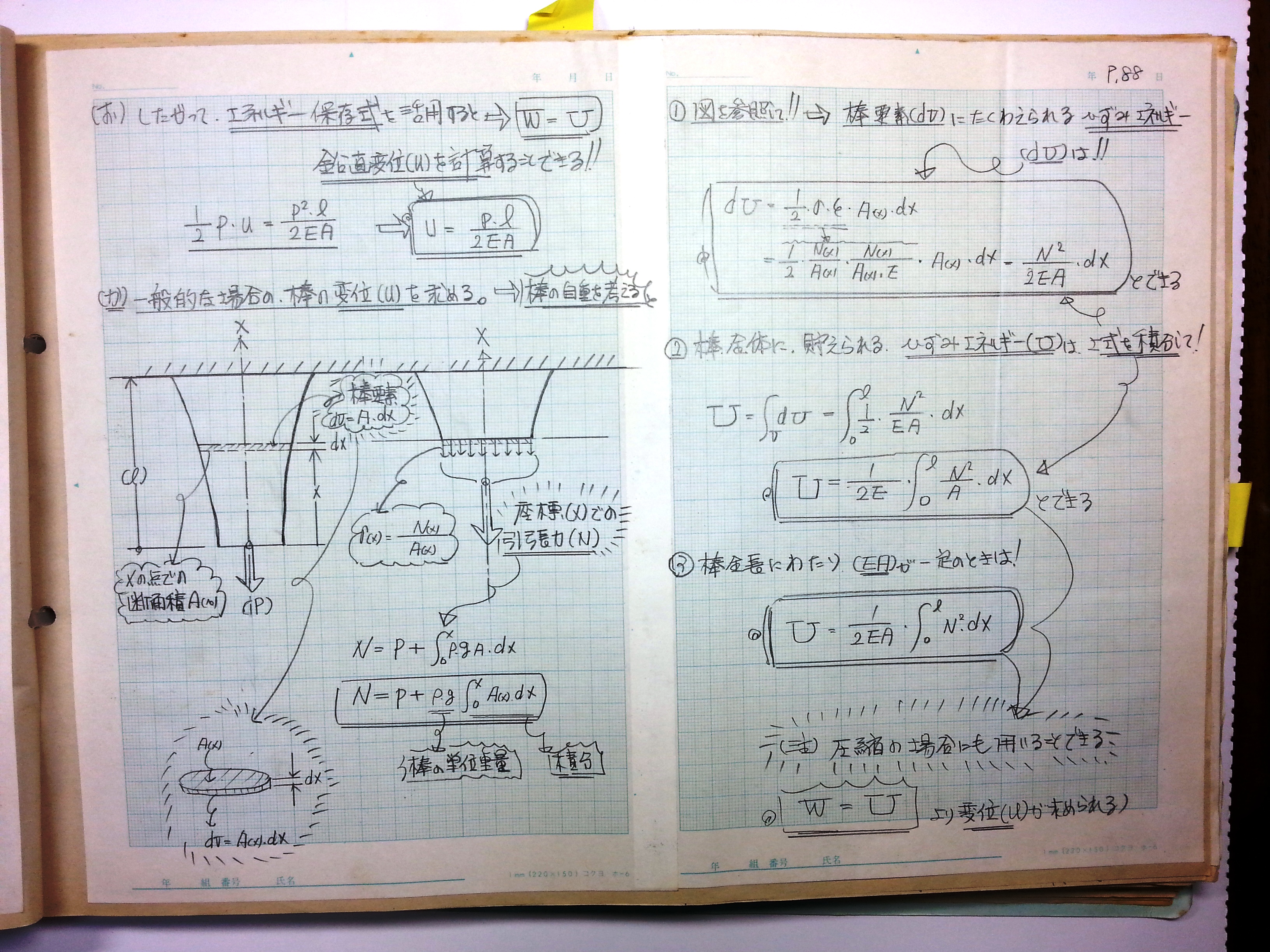 エネルギー保存式を活用 → W=ひずみエネルギーU 鉛直変位を計算できる