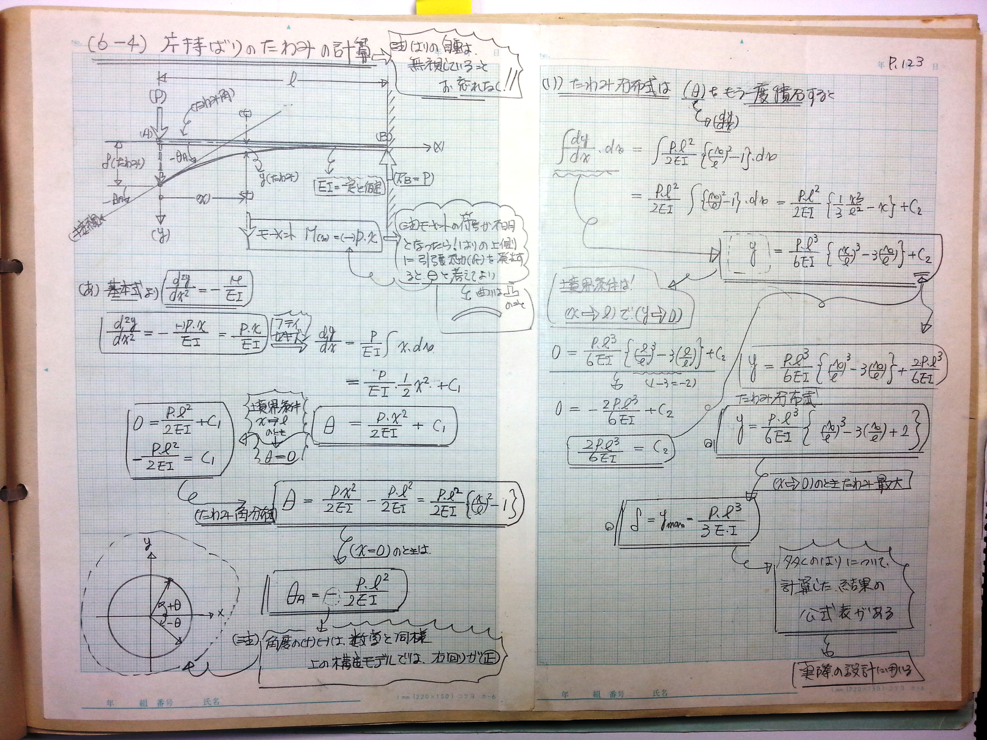 たわみ分布式をもう一度積分する