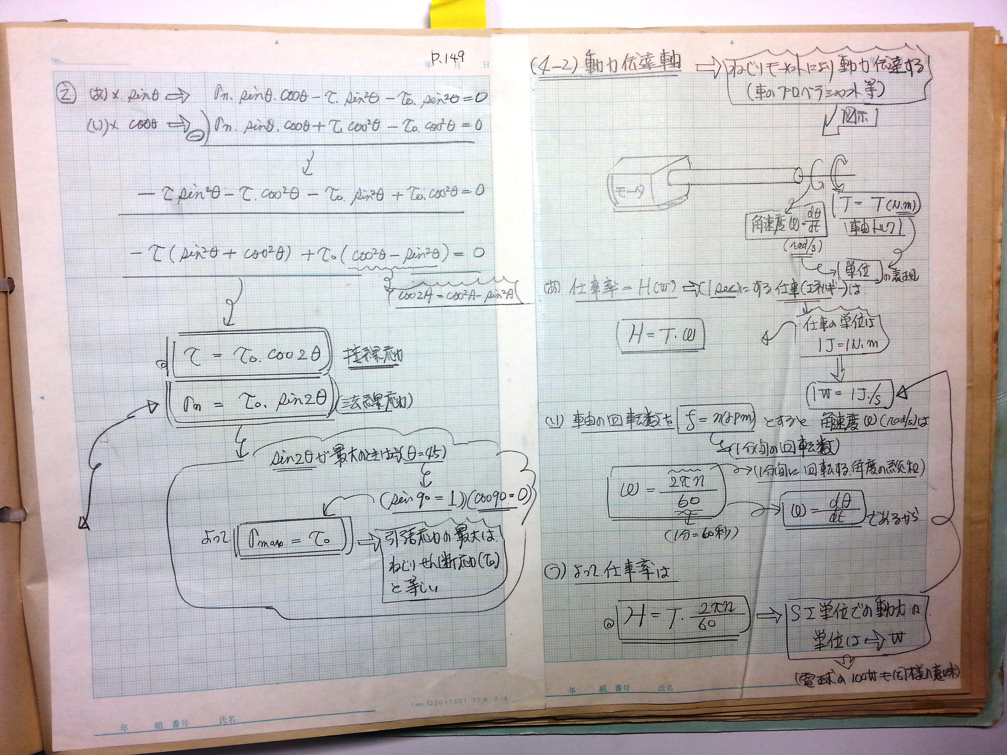 動力伝達軸 → ねじりモーメントにより動力伝達する(車のプロペラシャフト等)