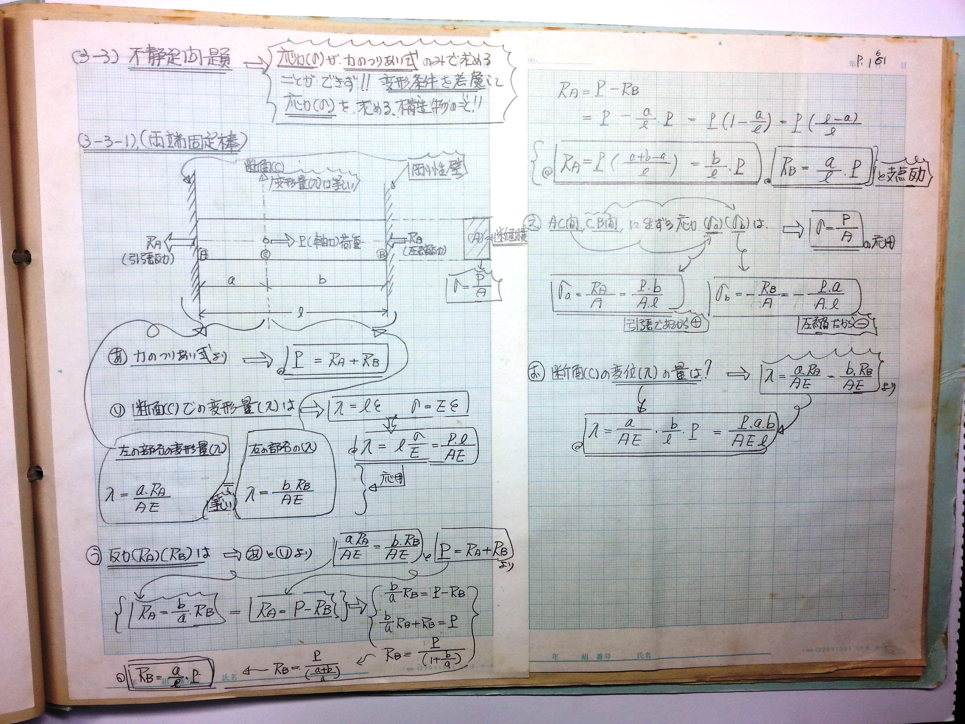 (3-3)不静定問題(応力が力のつりあい式のみで求めることができず、変形条件を考慮して応力を求める構造物)