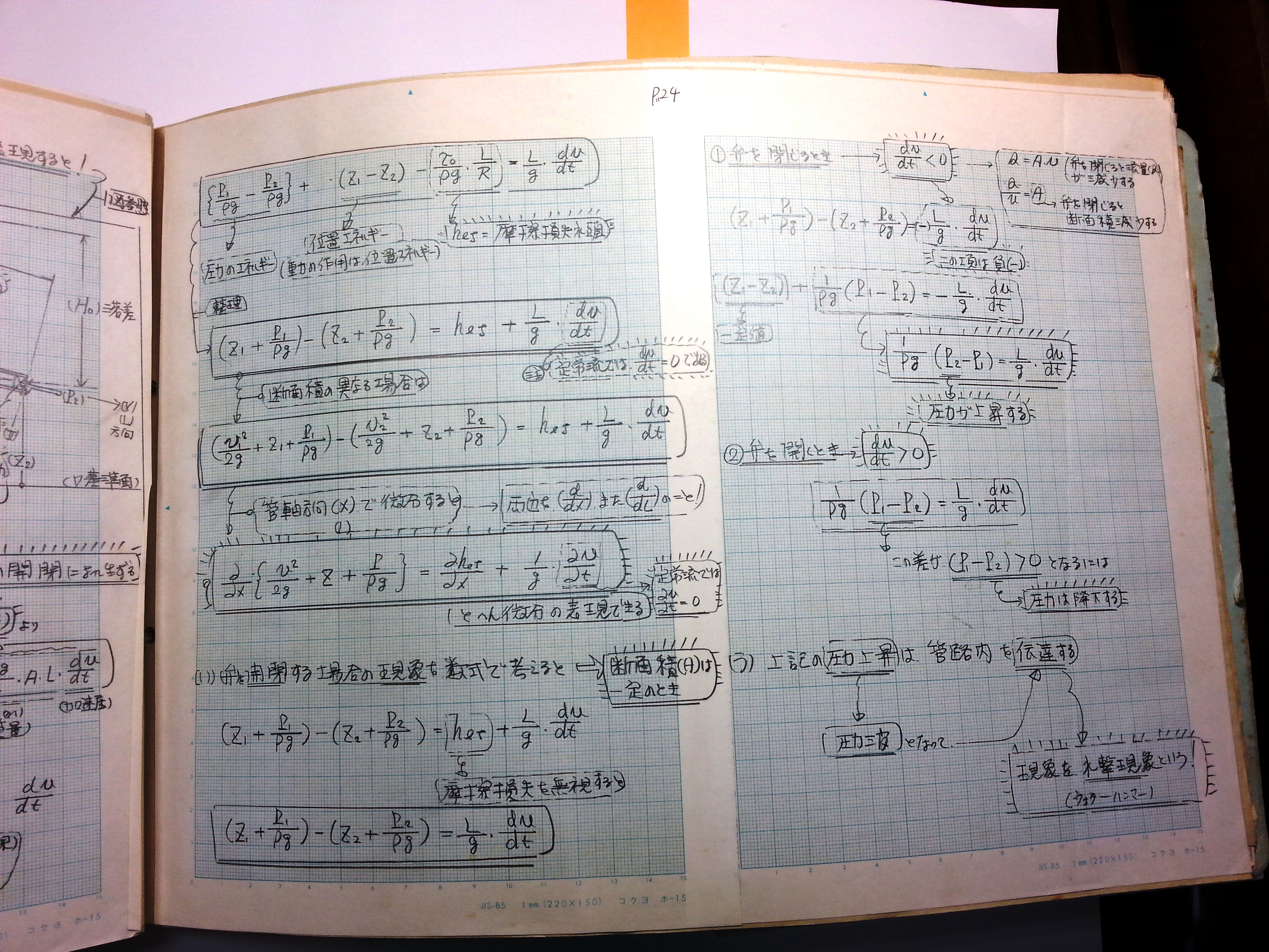 非定常管路流基礎方程式を具体的に表現 水撃現象(ウォーターハンマー)