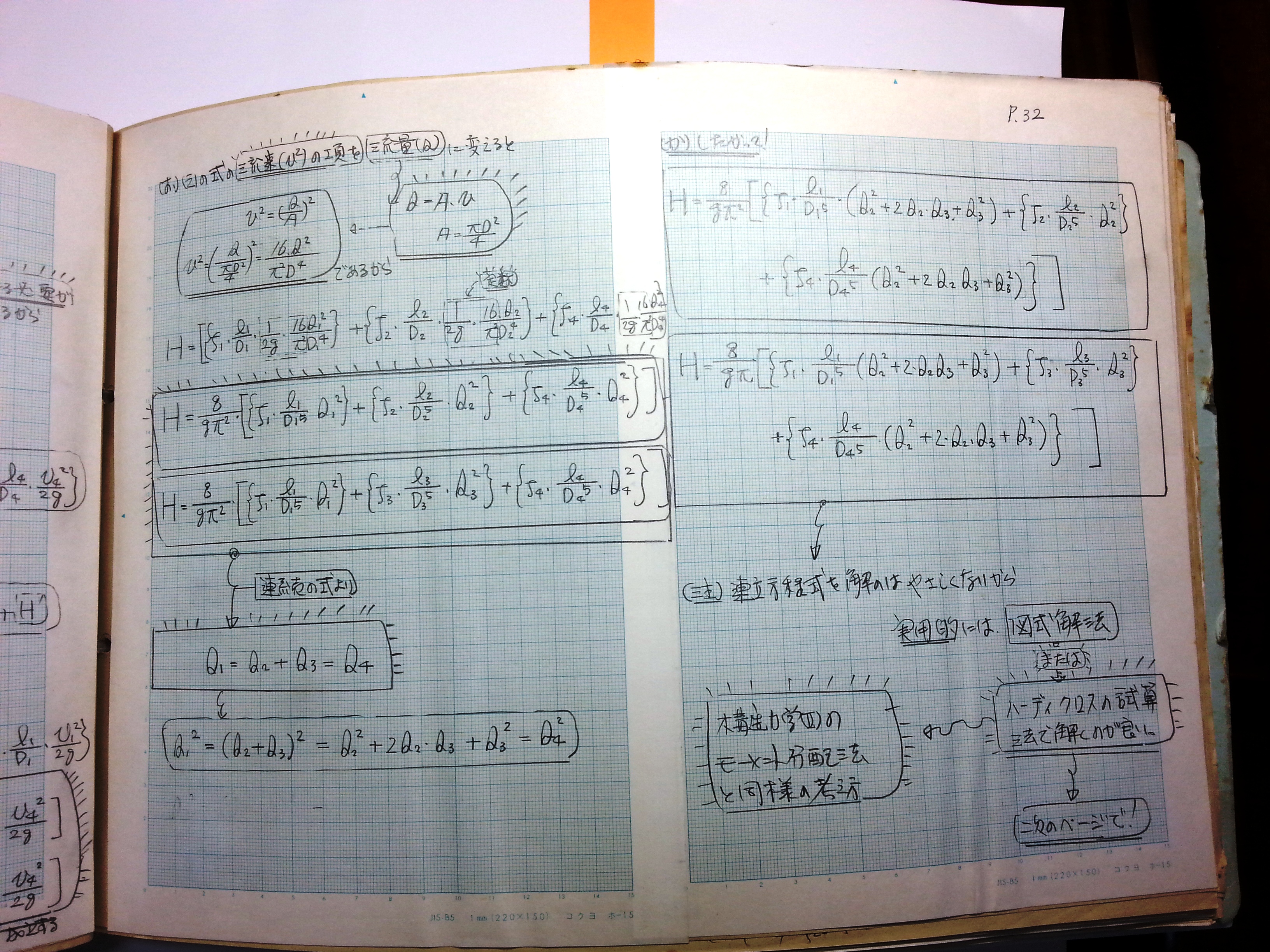 複線のある管路の流量(続き) 連立方程式を解くのは易しくない。