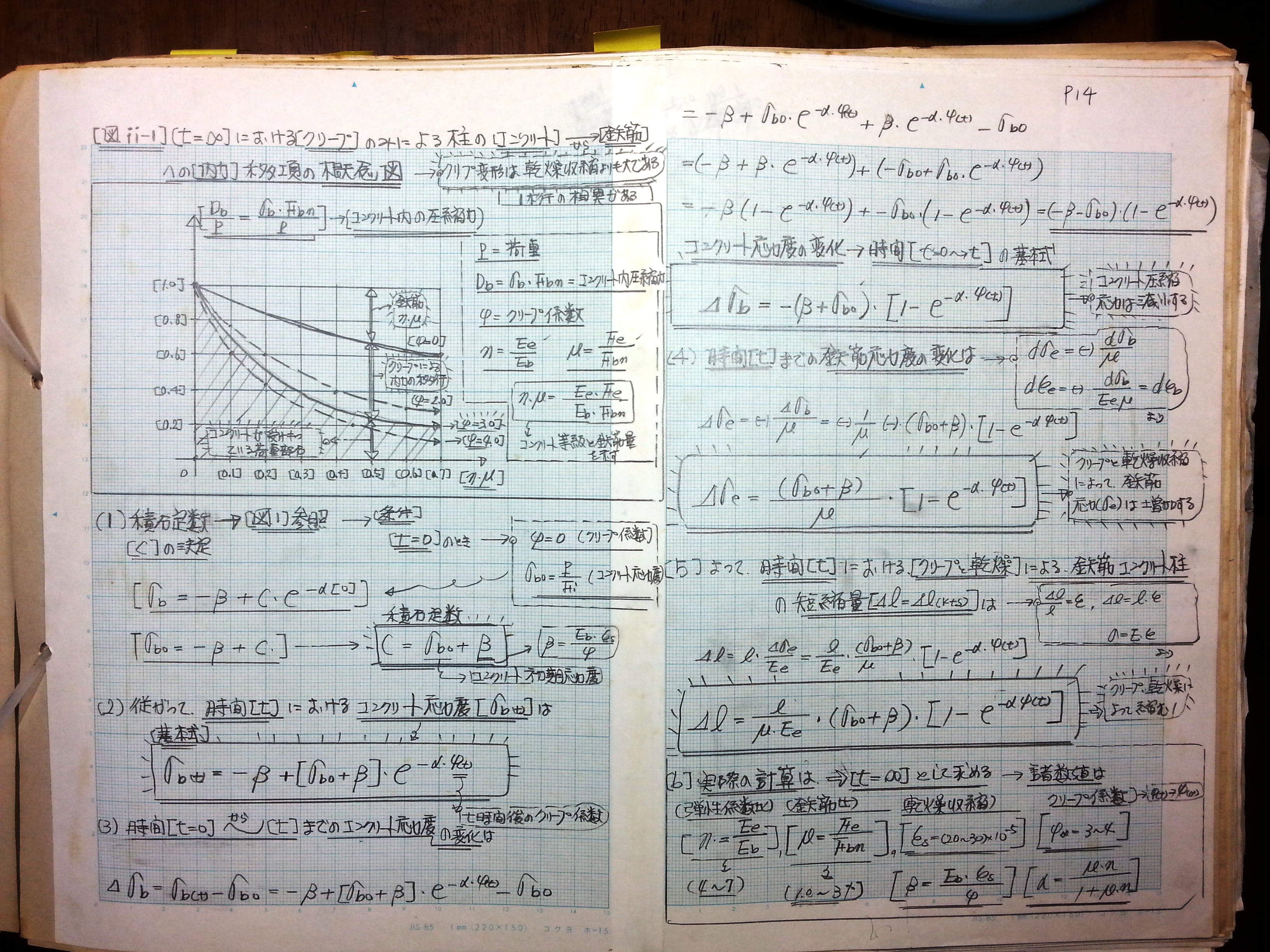 (2)したがって、時間[t]におけるコンクリート応力度は