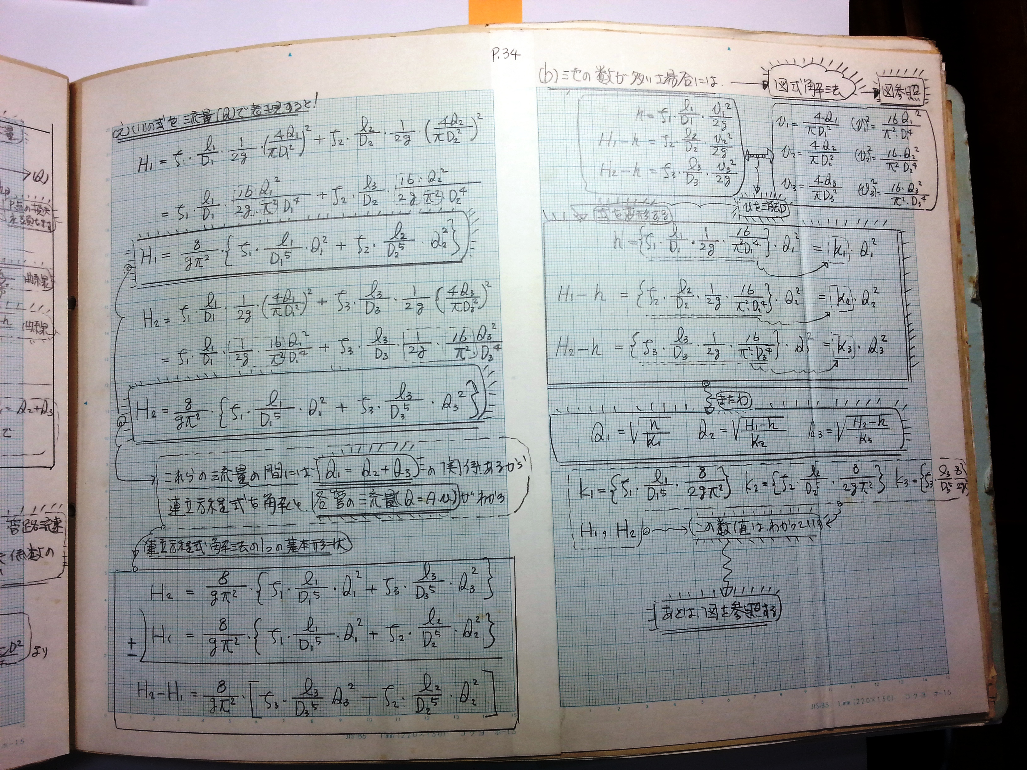 水頭高と管路流速、摩擦損失係数の関係式を流量で表現する 池の数が多い場合には、図式解法 水理学基礎一覧に戻る 上の画像をクリックしますと、画像が大きくなります。その画像をクリックしますと、さらに大きくなります。