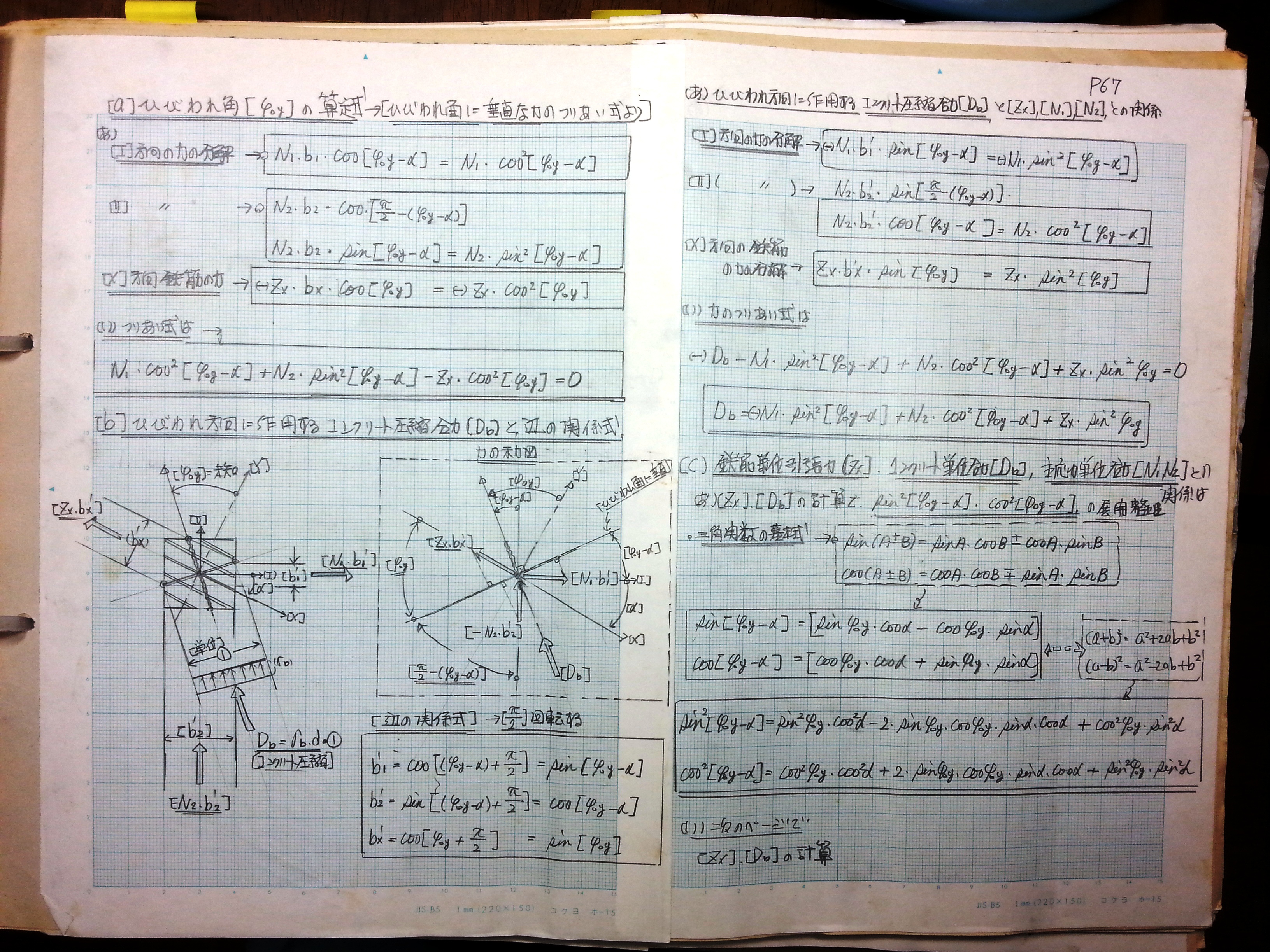 [b]ひび割れ方向に作用するコンクリート圧縮合力と辺の関係式