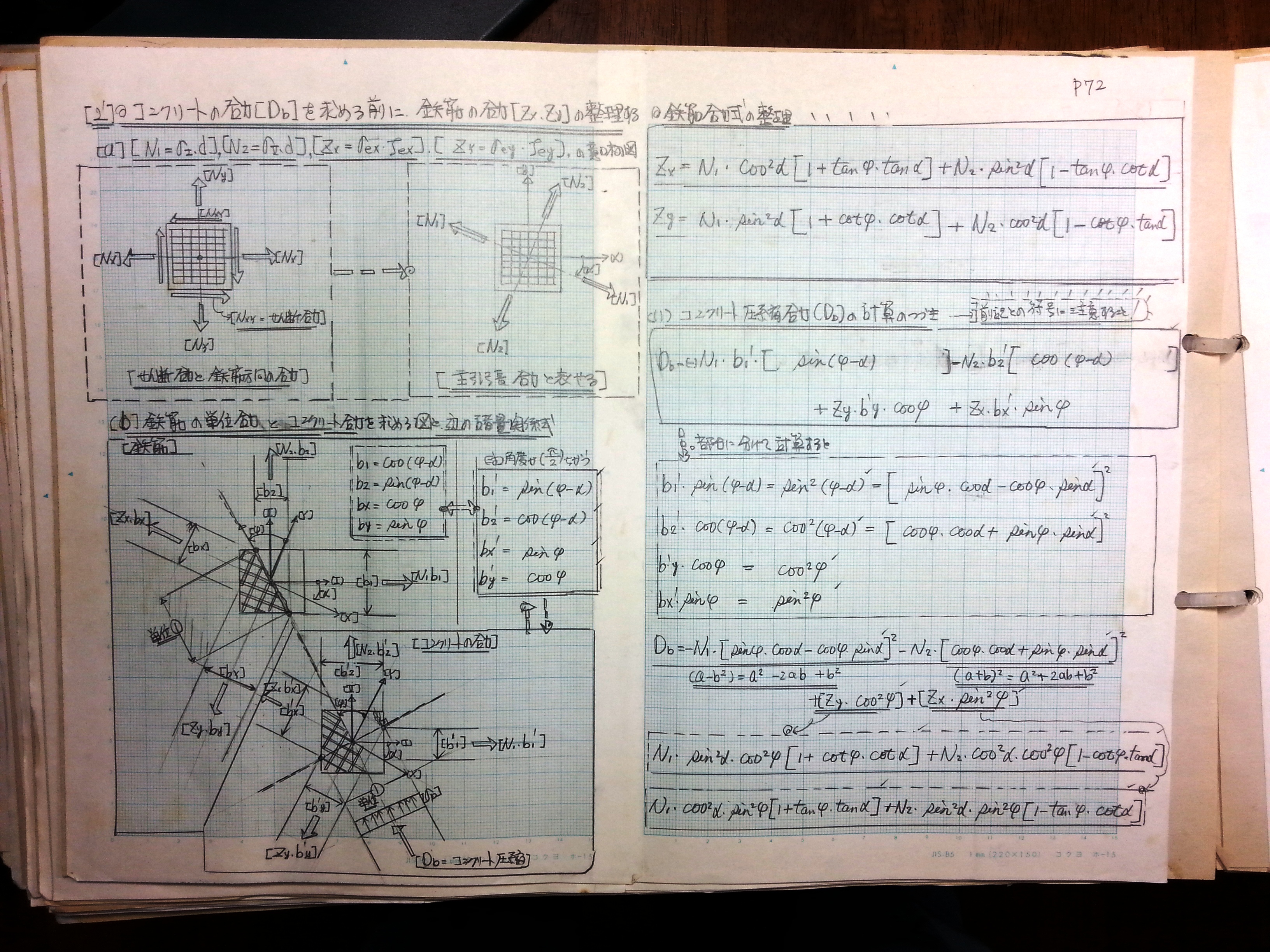 [b]鉄筋の単位合力とコンクリート合力を求める図と辺の諸量関係式