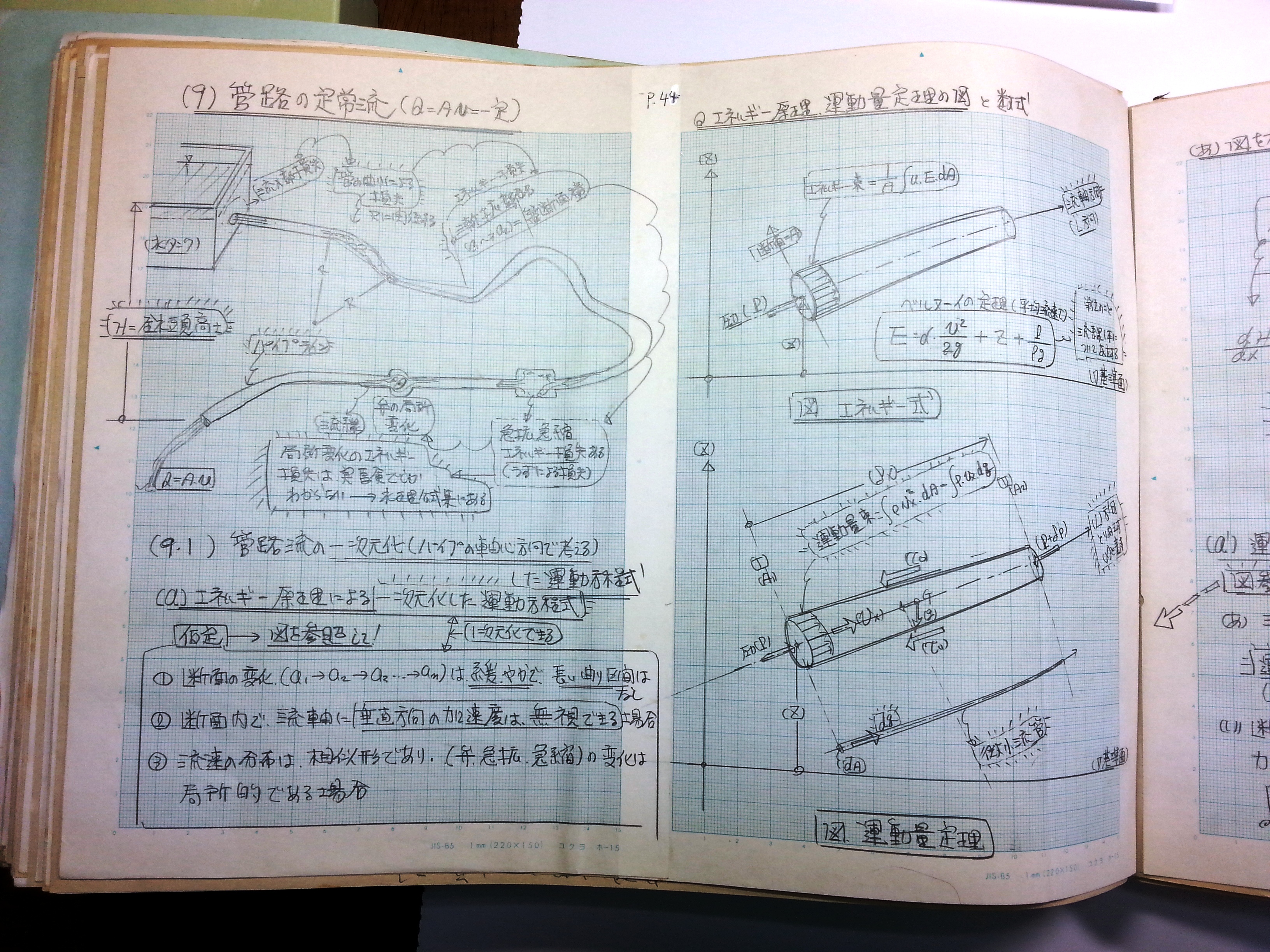 管路の定常流、管路流の一次元化(パイプの軸方向で) エネルギー原理、運動量定理の図と数式 水理学基礎一覧に戻る 上の画像をクリックしますと、画像が大きくなります。その画像をクリックしますと、さらに大きくなります。
