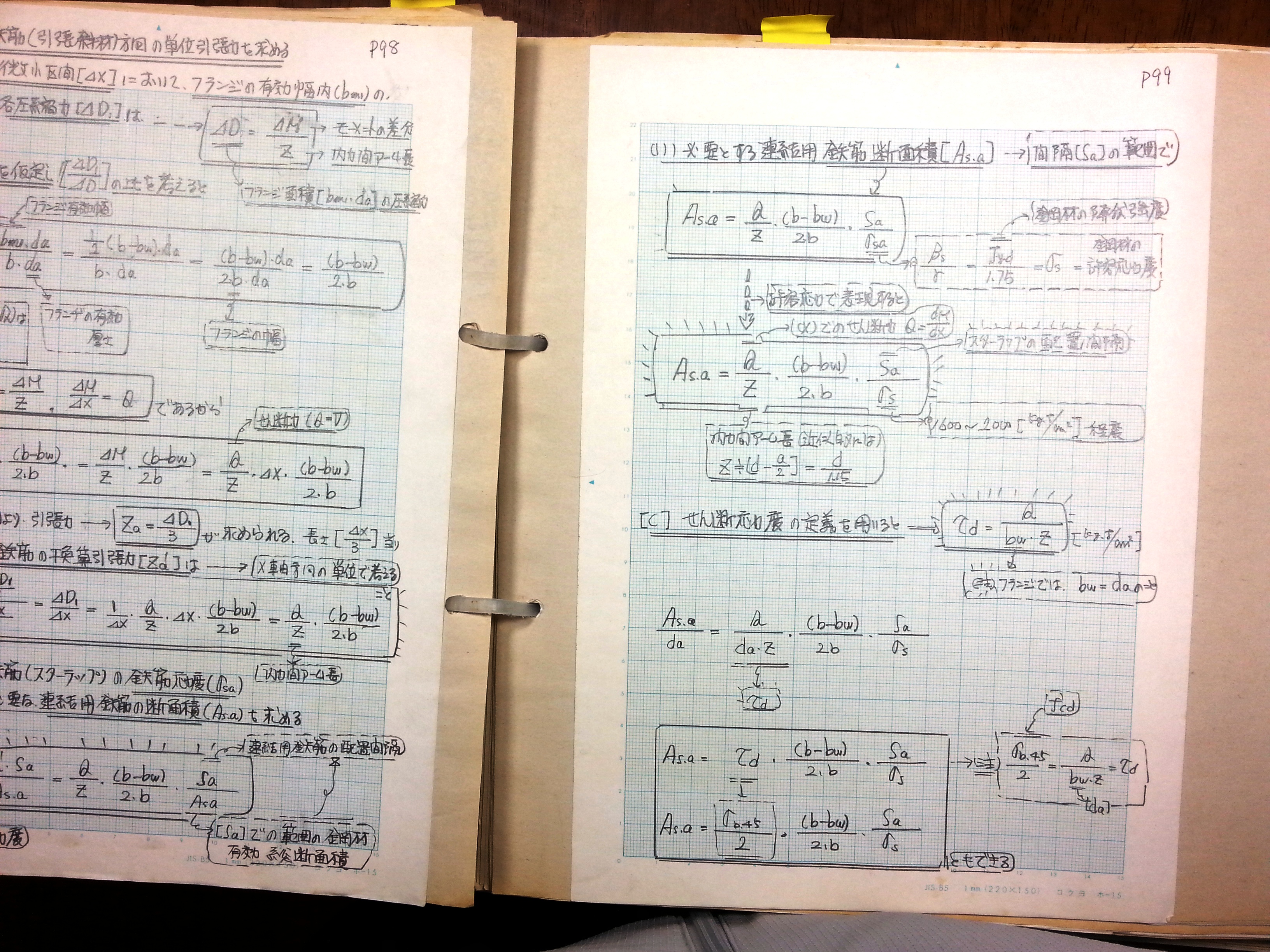[b]連結用鉄筋(スターラップ)の鉄筋応力度と必要な連結用鉄筋の断面積を求める