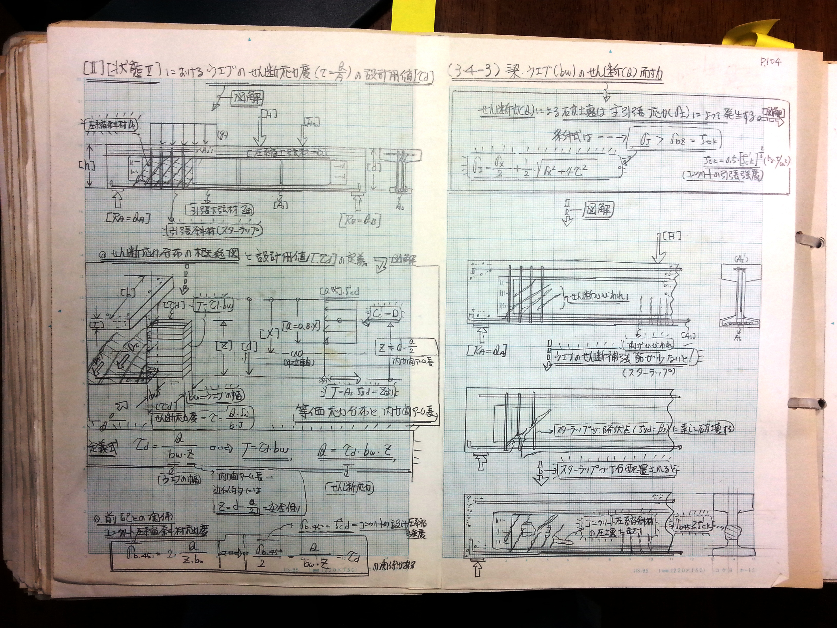 (3-4-2)ひび割れの生じたウェブにおける力および応力