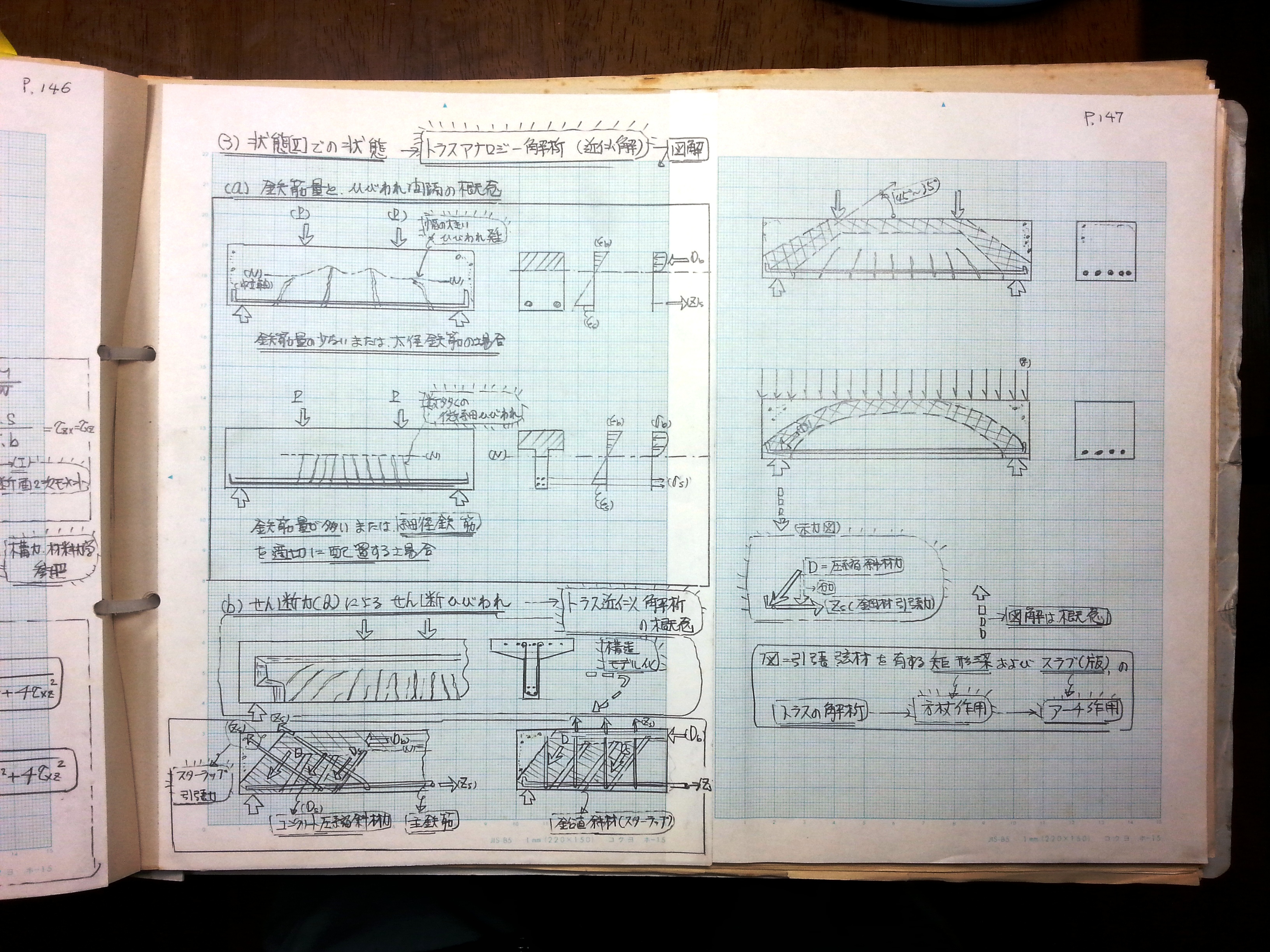 (b)せん断力によるせん断ひび割れ → トラス近似解析の概念
