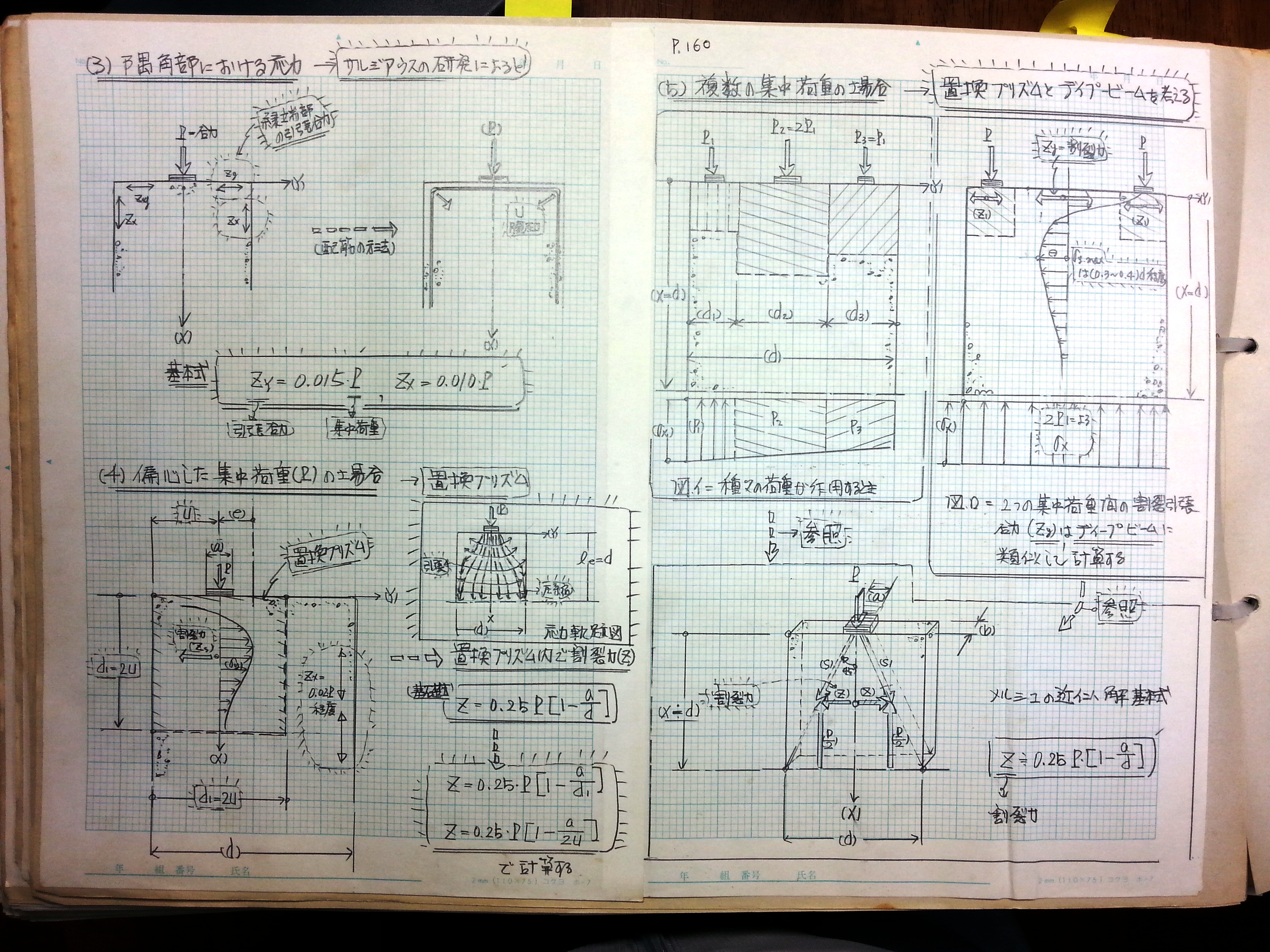 (5)複数の集中荷重の場合 → 置換プリズムとディープビームを考える