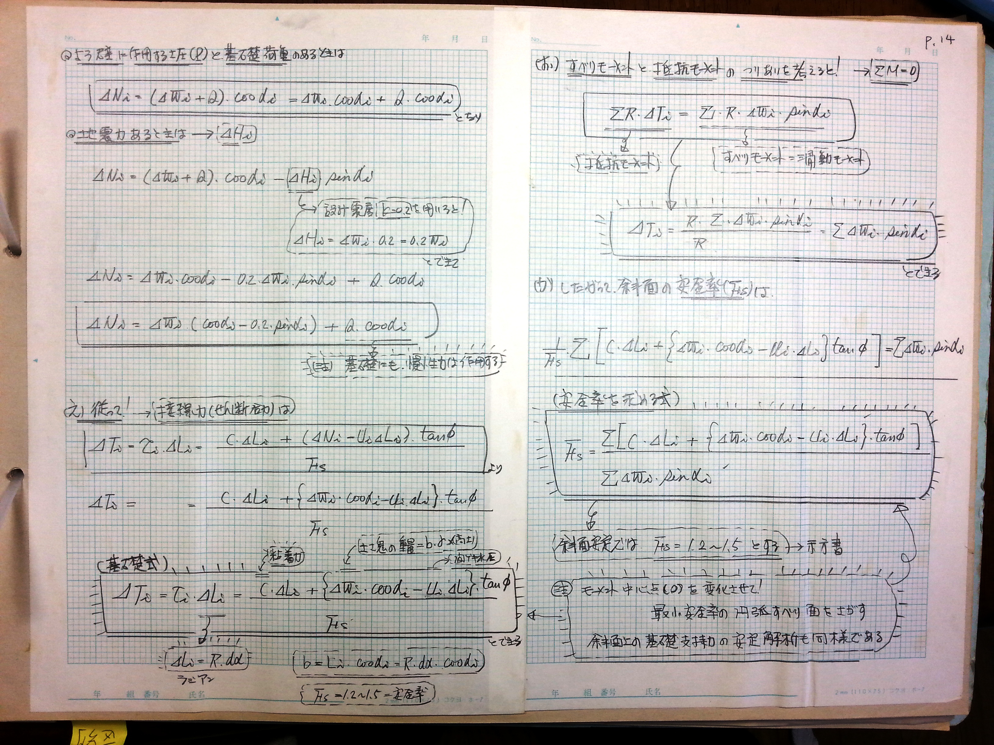 (か)したがって斜面の安全率は