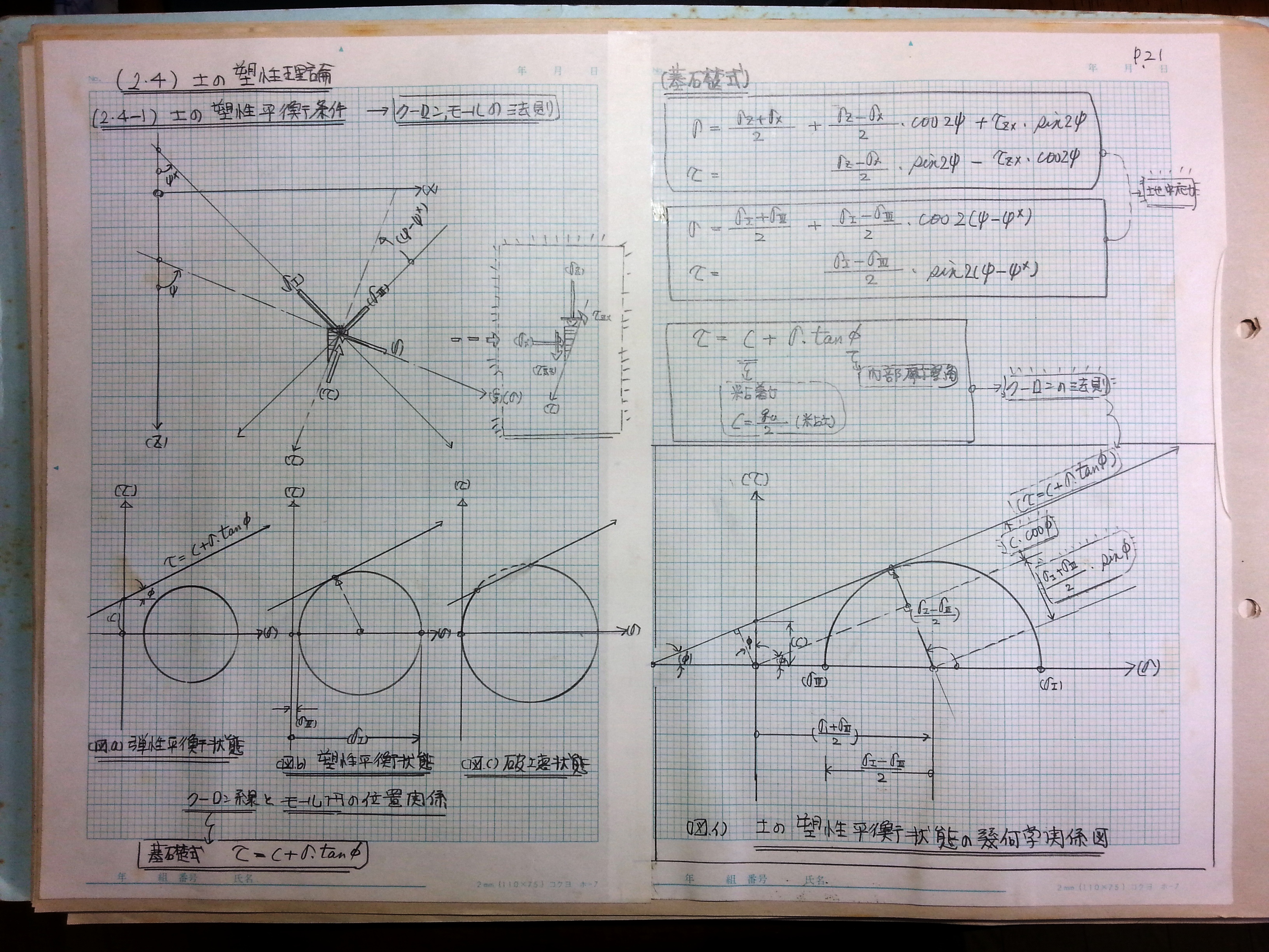 (2-4-1)土の塑性平衡条件 → クーロン、モールの法則