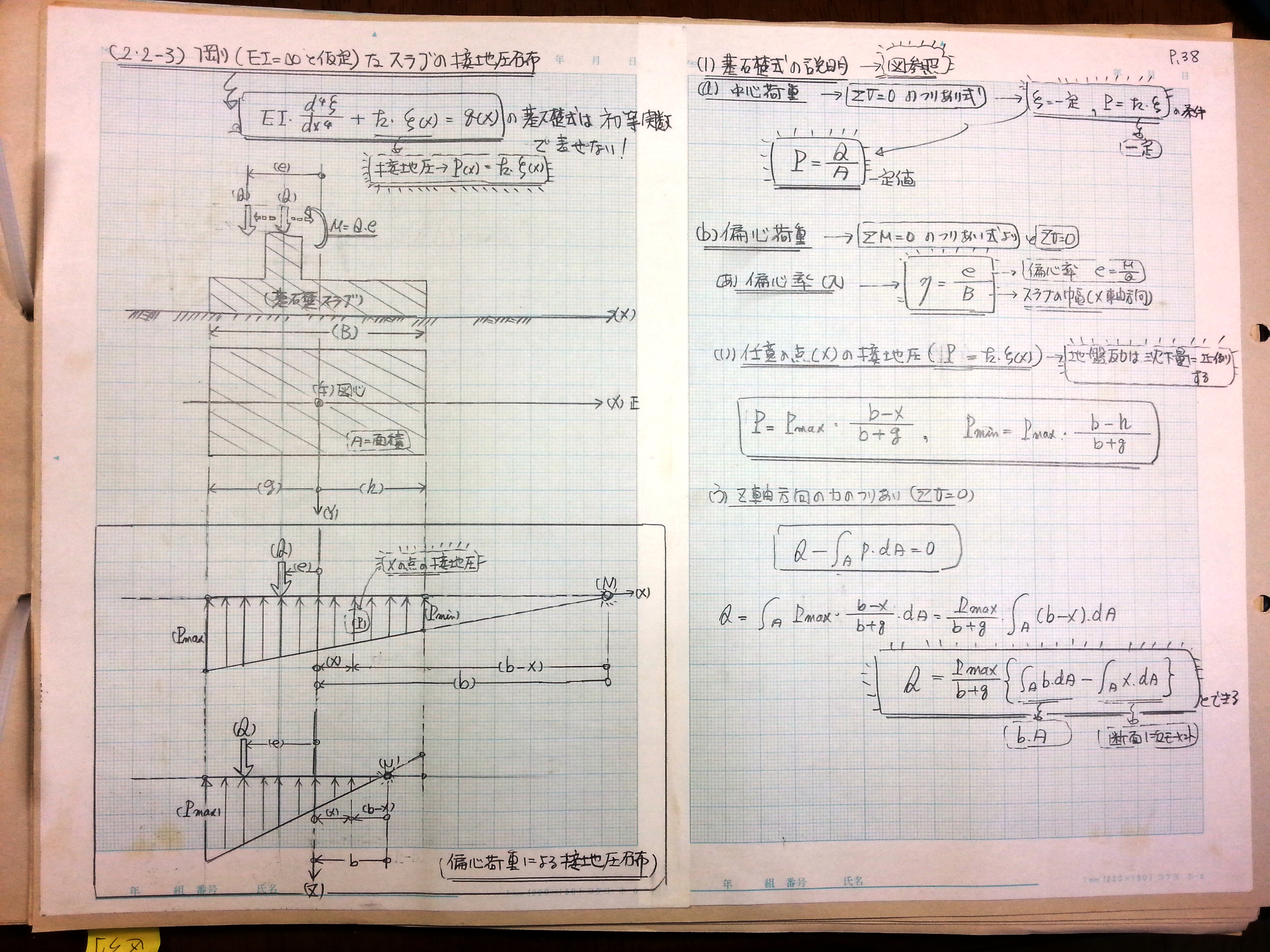 (い)任意の点の接地圧 → 地盤反力は、沈下量に比例する