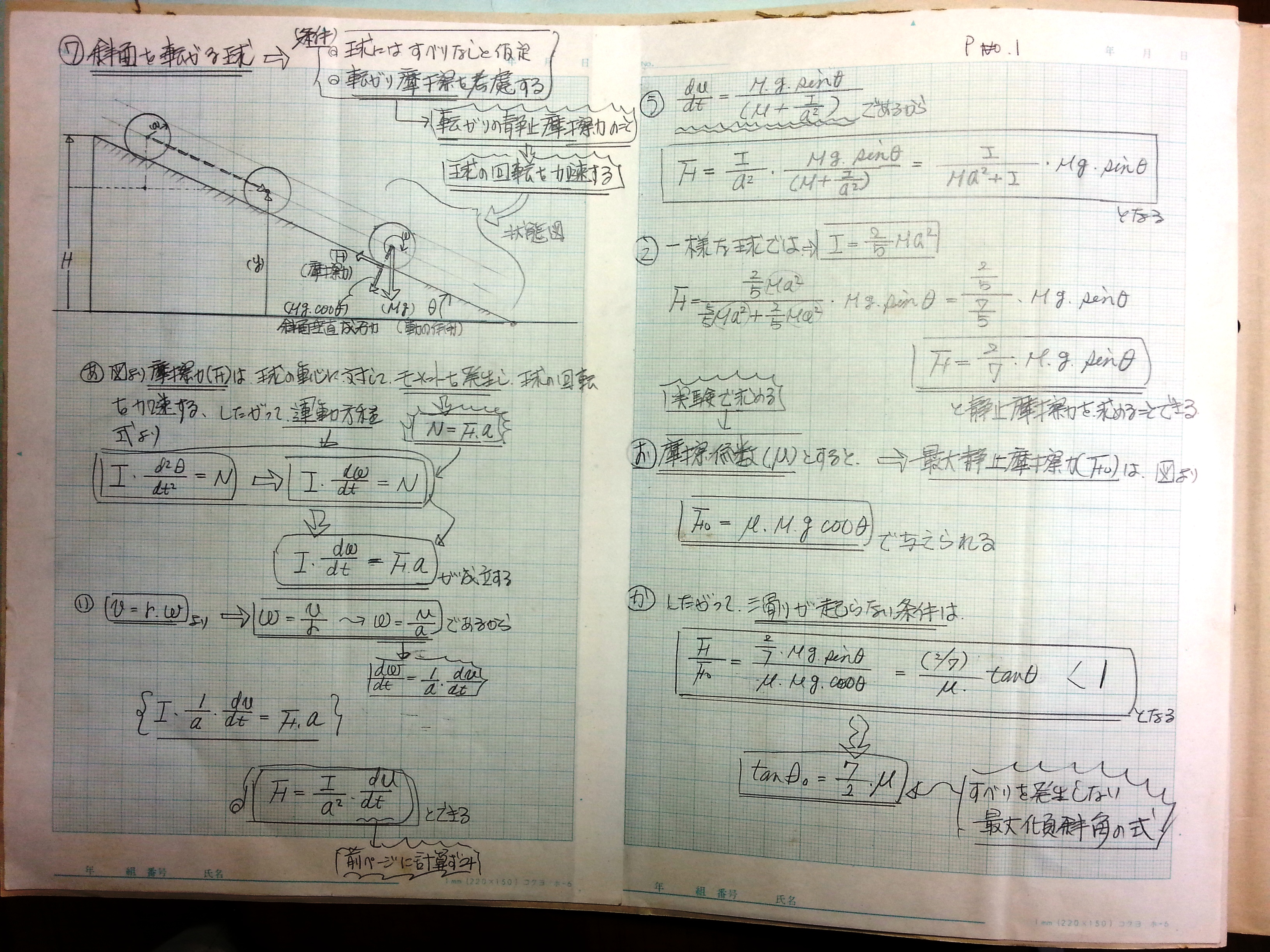 (あ)図より摩擦力は球の重心に対して、モーメントを発生し、球の回転を加速する