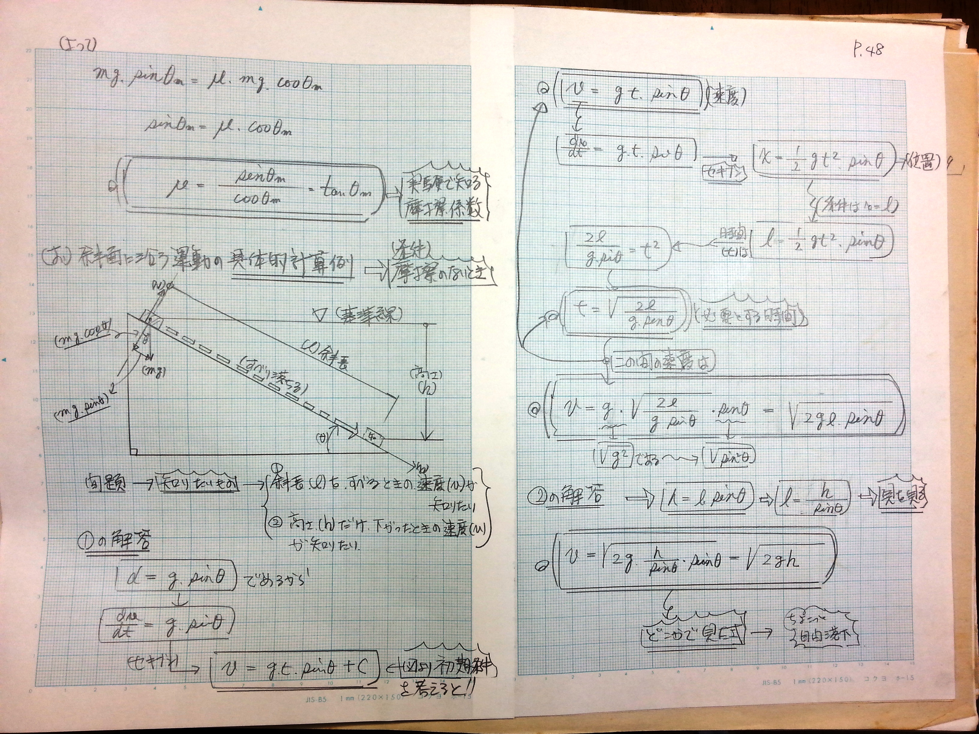 (お)斜面に沿う運動の具体的計算例 → 摩擦のないとき