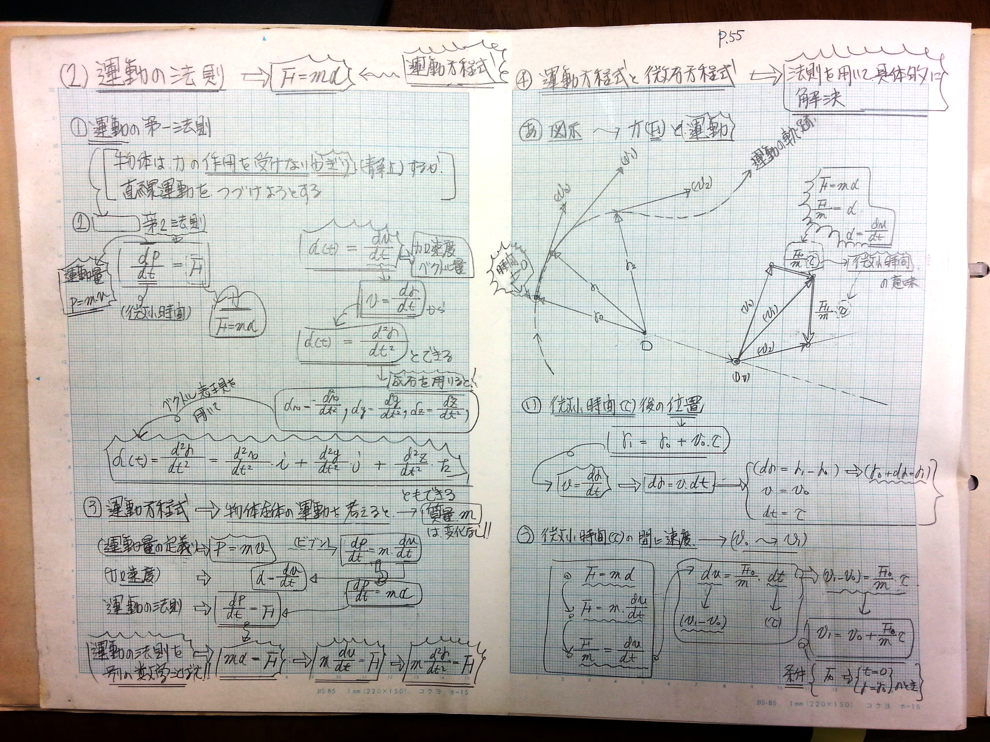 (2)運動の法則 → F=md (運動方程式)
