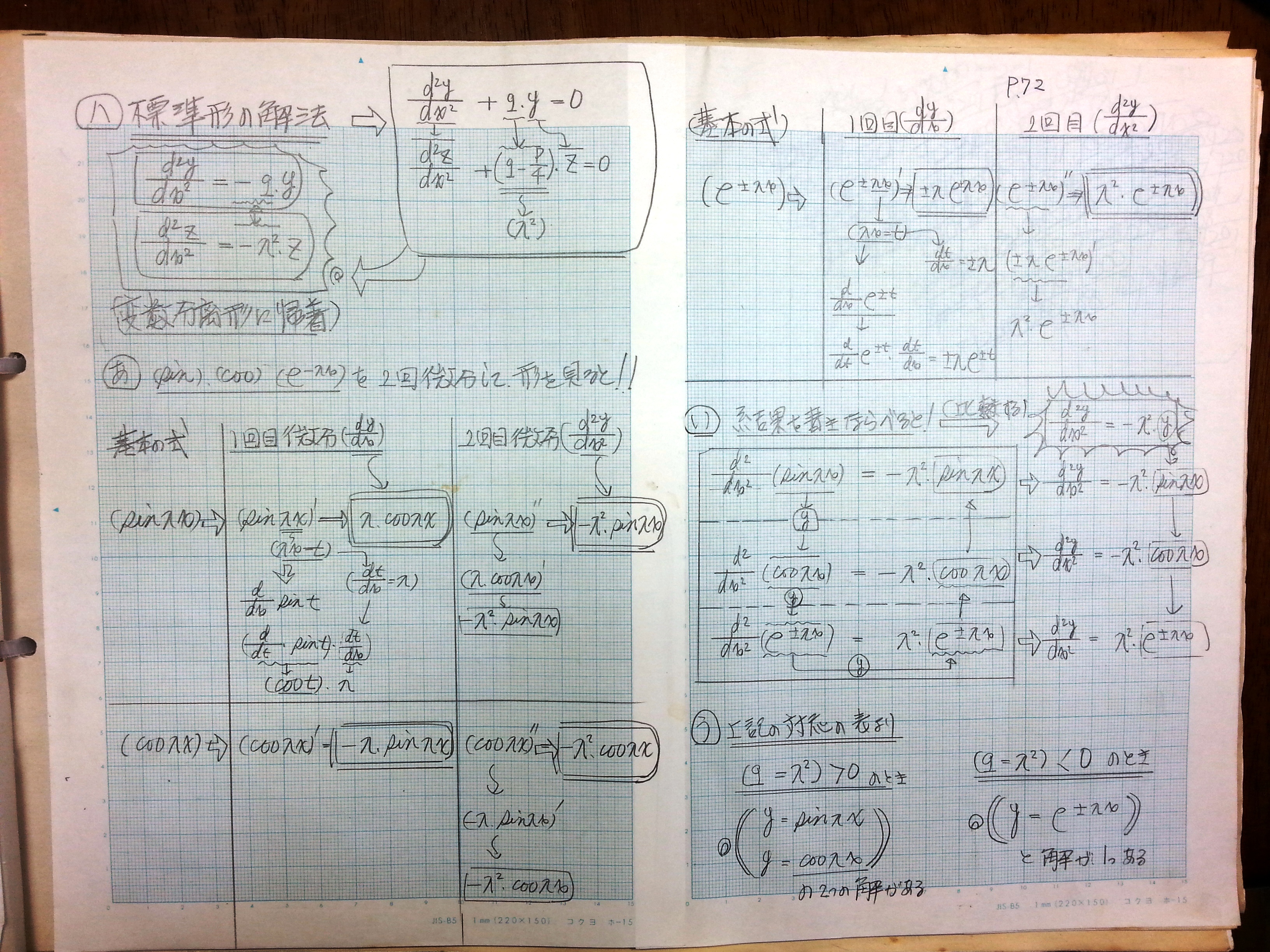 (あ)sin, cos, ・・・を2回微分して形を見ると