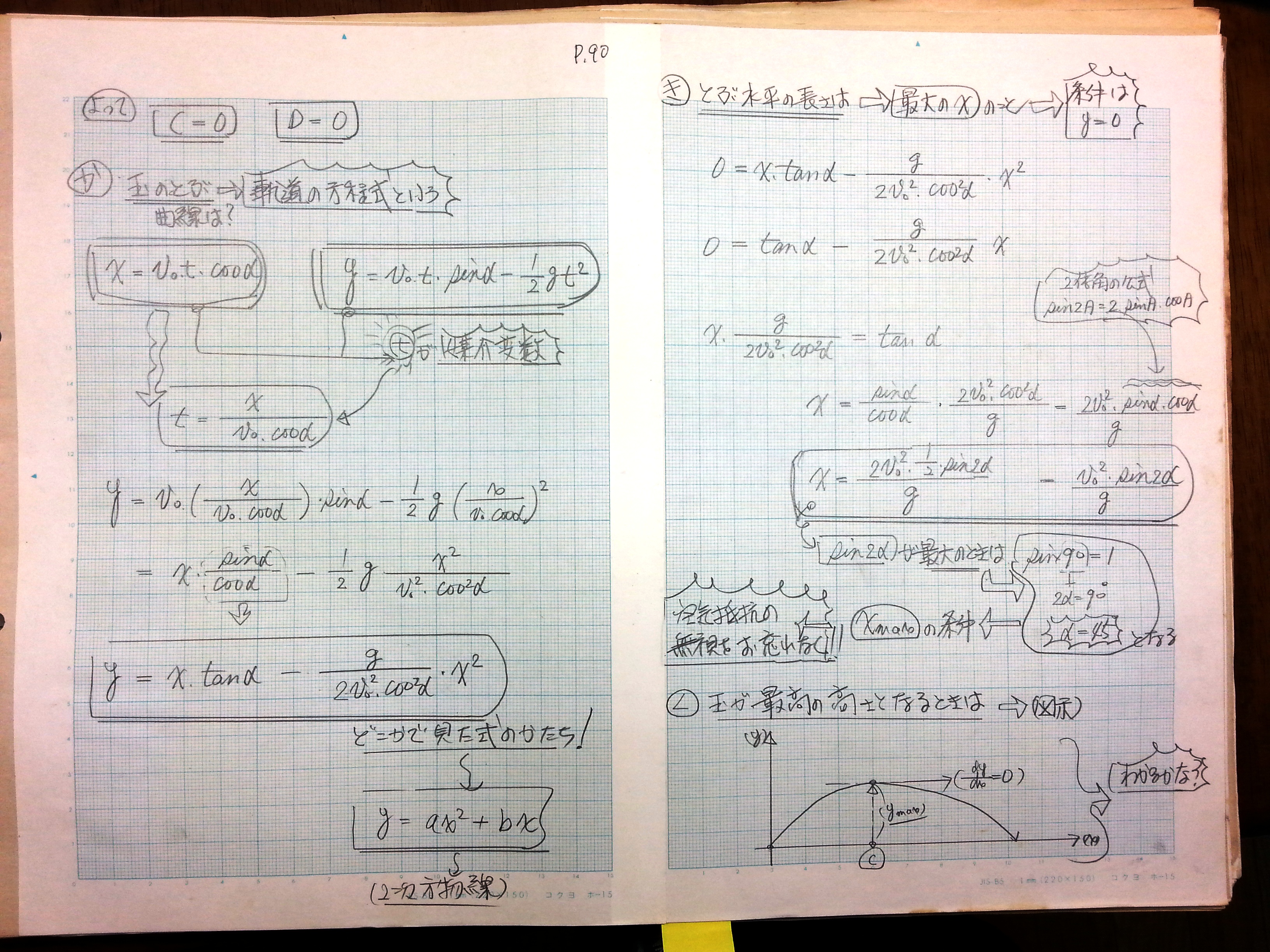 (か)玉の飛ぶ曲線は → 軌道の方程式という