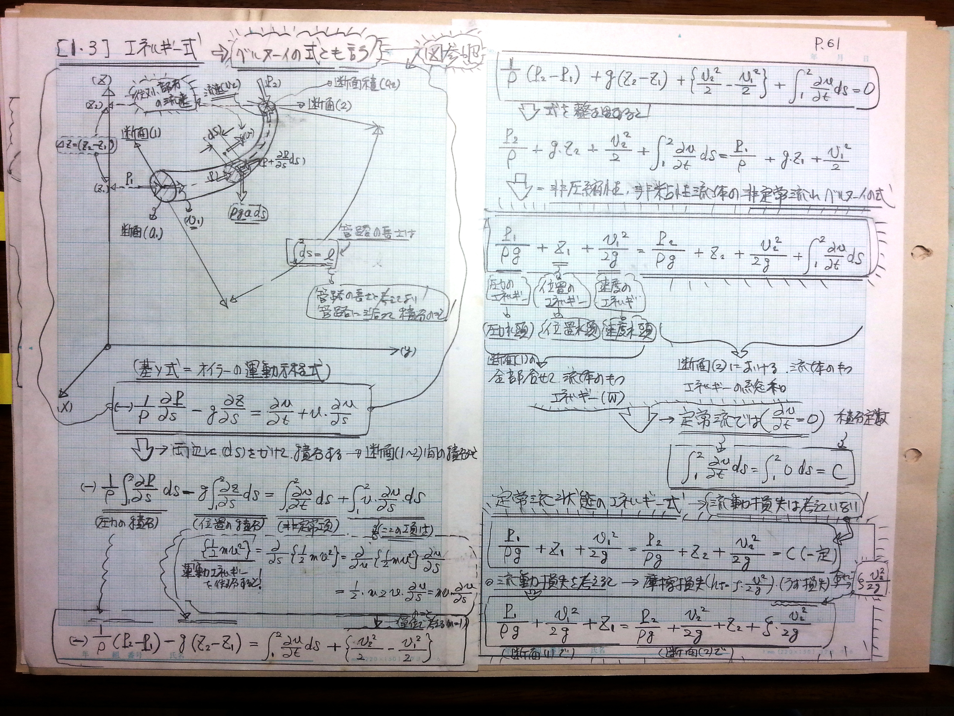 [1-3]エネルギー式 → ベルヌーイの式とも言う