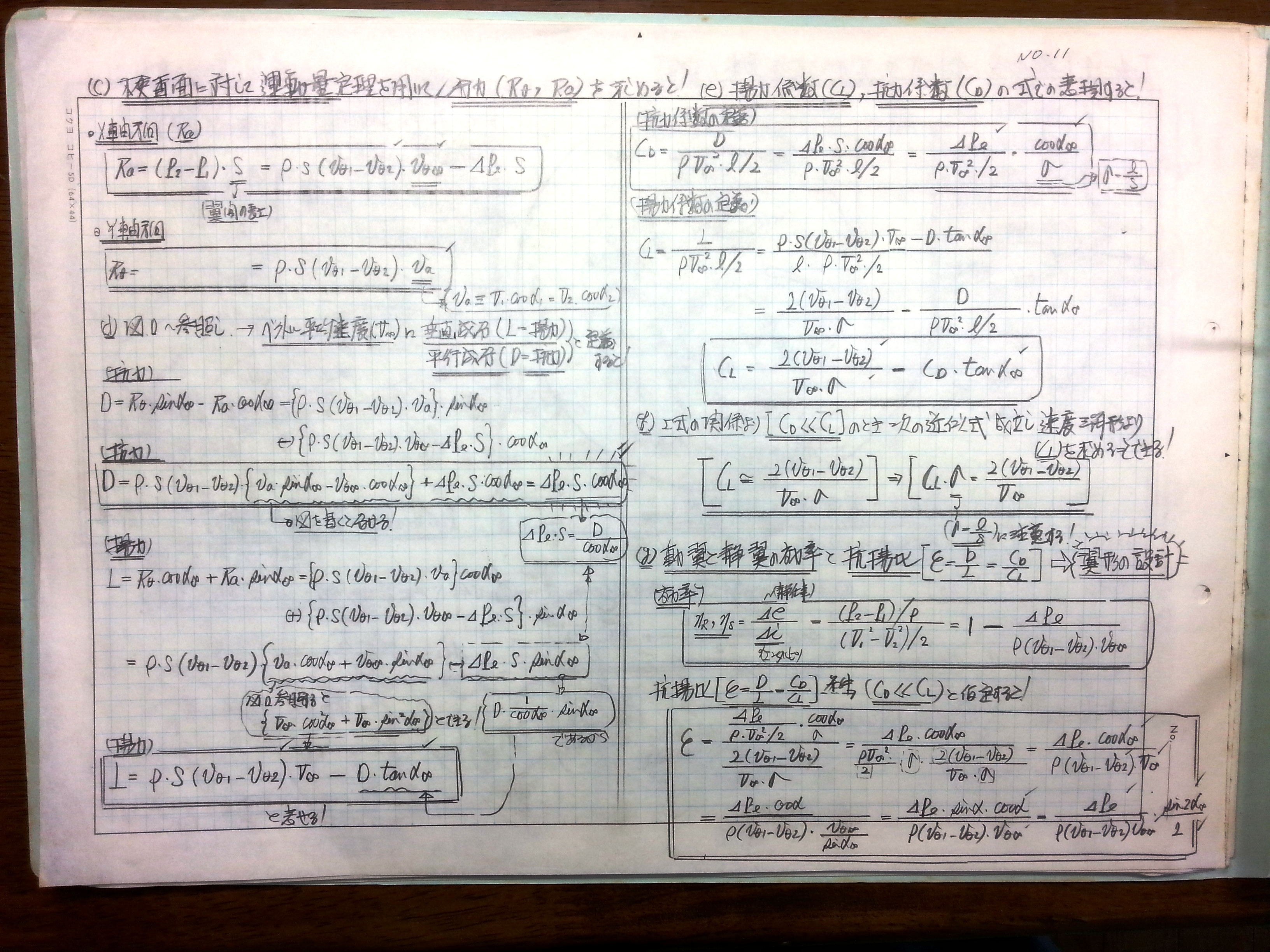 (e)揚力係数、抗力係数の式での表現すると